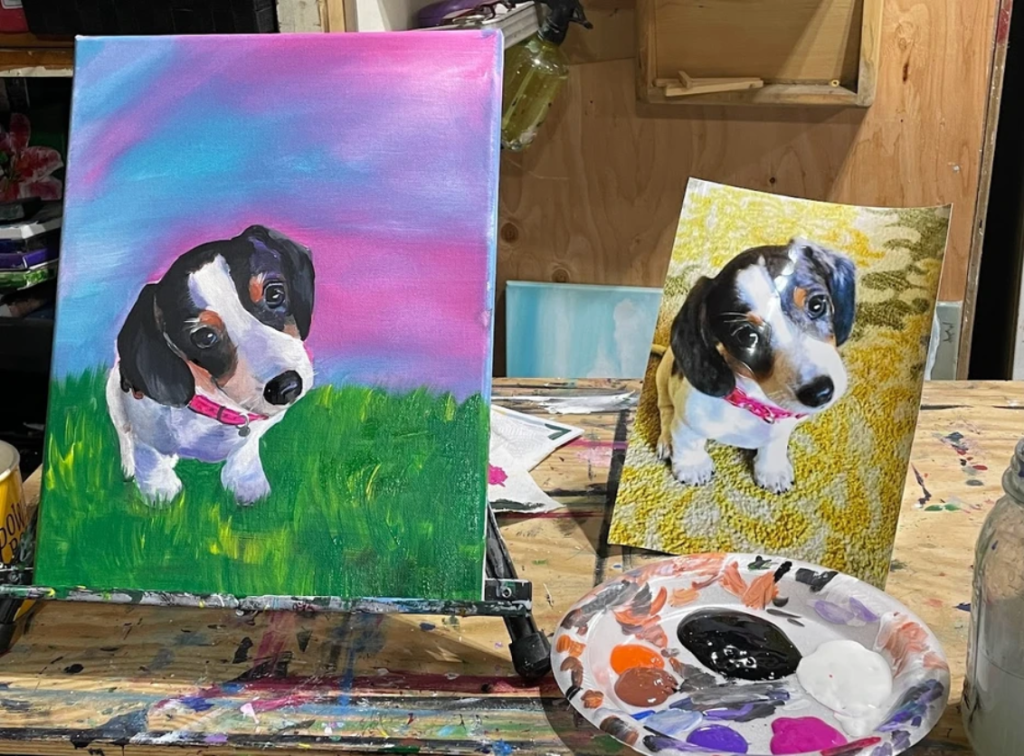 Hope believes in supporting the community and says, “10% of all Paint Your Pet events go to the Columbia Humane Society.” She can travel to people’s homes, restaurants, or other places, and accommodate up to 80 painters.